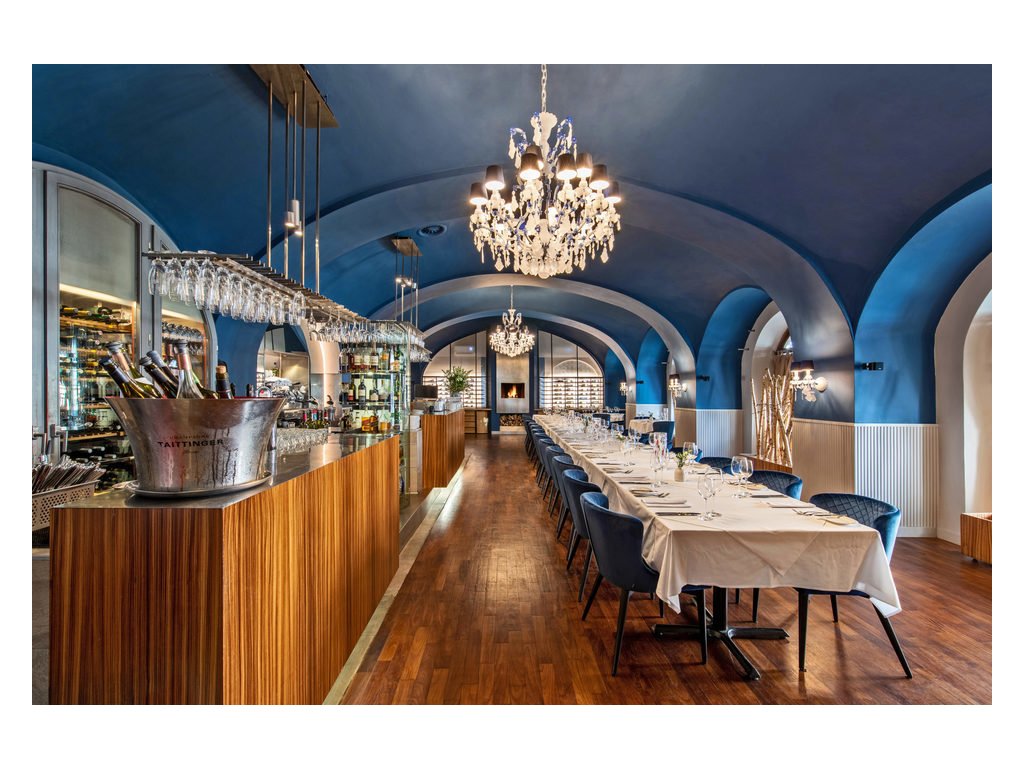 pečlivě sestavený vinný lístek, moderně klasický design interiéru a skvělá obsluha.